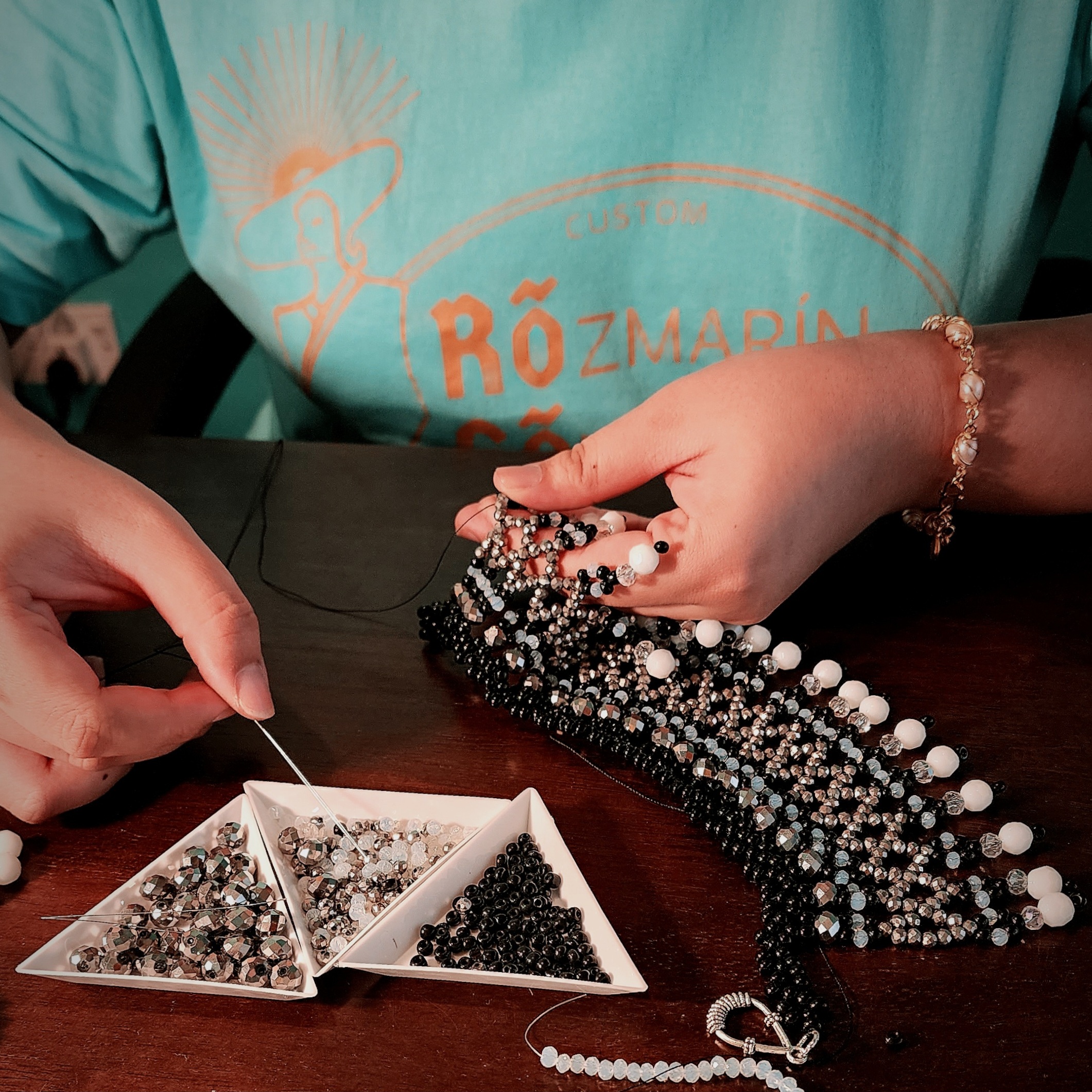 Being exposed to the craft and arts at a young age, Rosemary learned the ways to weave beads into a piece. Along the years, she self taught herself new ideas and weaving patterns through experimenting and researching, breaking the norm and bringing the past to the present.