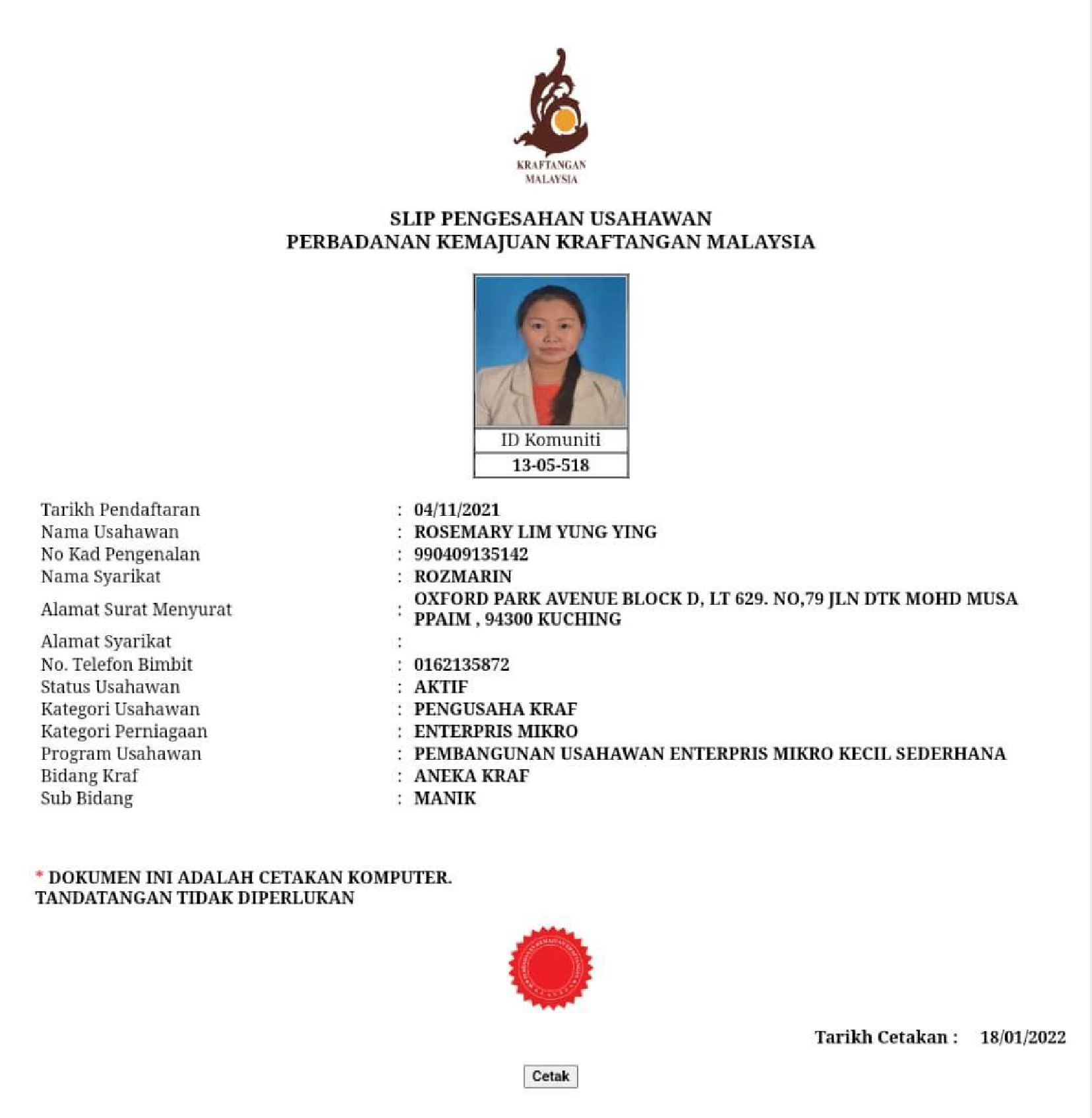 Rosemary Lim started her jewellery making interest as early as 12 years old whilst she was assisting her mother in operating her business which was previously located in the Sarawak Textile Museum.